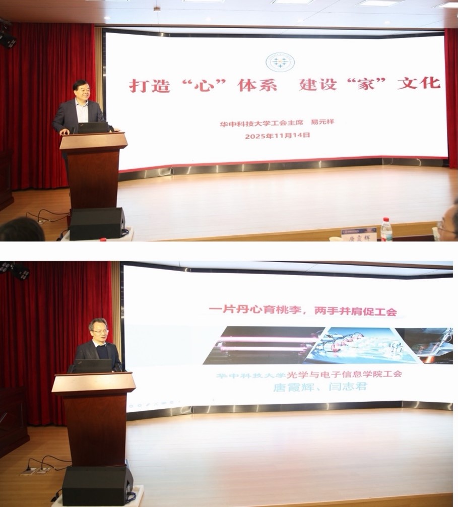 下午,培训班学员到华中科技大学工会学习、调研,听取华中科技大学工会主席易元祥和光电学院分工会主席唐霞辉分别介绍学校、学院工会工作情况及取得的经验。